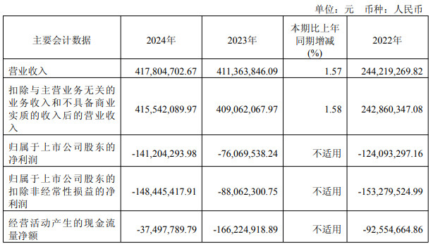 2021年度、2022年度、2023年度、2024年度,公司归属于上市公司股东的净利润分别为-2998.56万元、-1.24亿元、-7606.95万元、-1.41亿元、-684.05万元。